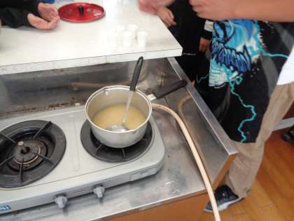 5年生で「ごはんとみそ汁」を作る調理実習をしました。