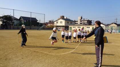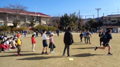 たてわり活動で大繩大会がありました。たてわりは1〜6年生の児童で4色の色のグループに分かれています。大繩大会に向けて体育でも練習していたので、練習の成果を発揮することができたようです。