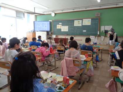 三色ゼリーも子どもたちに人気のデザートで、春の訪れを給食で感じていました。