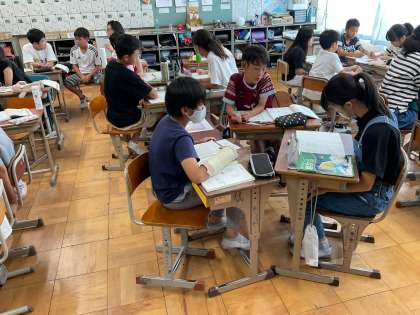 算数科「立体の体積」の学習に入っています。今日は三角柱と四角柱の体積の求め方を考えました。「底面積×高さ」という公式にただ当てはめるというのではなく、どんな考え方ができるか、どう考えると理解しやすいか、しっかりと考えることが大切です。また、その考えを口に出すことでさらに理解が深まります。