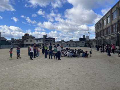 当日は、PTAの役員の方々、ハンター役として立候補していただいた保護者の方々、修学院中学校の生徒たちが、ハンター役として「逃走中」に参加してくださいました。本物さながらのハンターの姿でハンター役をしていただいた保護者の方もおられ、子どもたちも楽しく活動することができました。有難うございました。