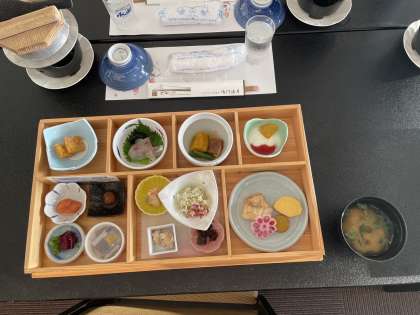 朝食の時間になりました。朝からとても豪華な食事を、最高の景色の中いただきます。