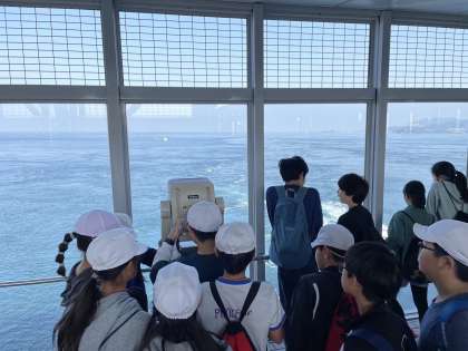 鳴門海峡大橋 渦の道を見学しています。綺麗な海、そして渦潮。天気もよく、半袖でも過ごせるくらいの陽気です。