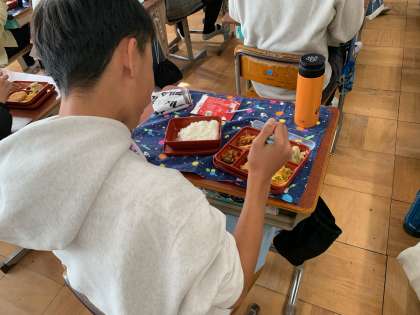 今日は中学校給食試食体験がありました。中学校から給食にしようかお弁当にしようかと迷っておられるご家庭も多いかと思います。ぜひ感想を聞いていただき、参考にしていただければと思います。
