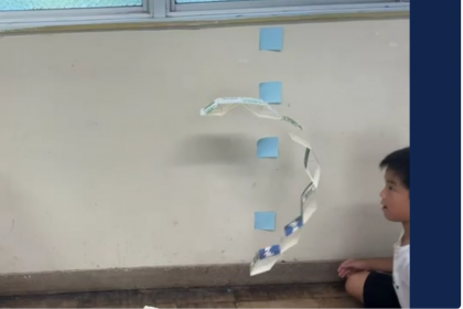 生活科「あそんでためしてくふうして」では牛乳パックと輪ゴムを組み合わせて「とぶおもちゃ」を作りました。作り方は簡単だったので作った後は遊びました。遠くまで飛ばしたり、高くまで飛ばしたりして遊びました。作った牛乳パックを組み合わせてヘビみ対してにしてとばしている姿も見られました。