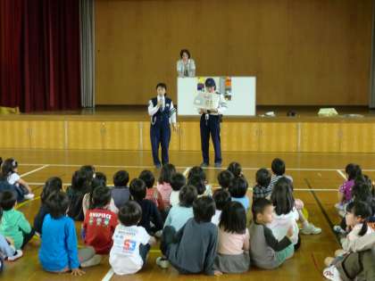 今日は,下鴨署の人に来ていただいて交通安全教室をしていただきました。
