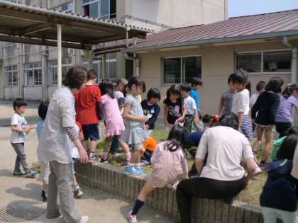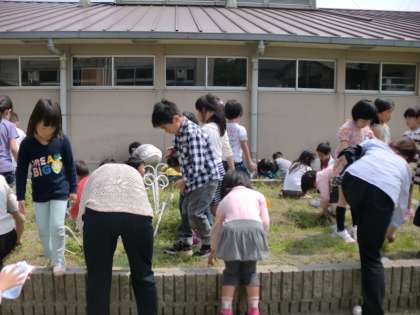 1年生も掃除を始めました。給食当番以外のグループは,外の草引きをします。今日は,1年生の花壇の草引きをしました。草を引きながら虫を見つけて大騒ぎでした。みんなで頑張って学校をきれいにしていきたいです。