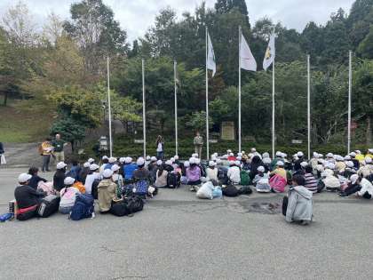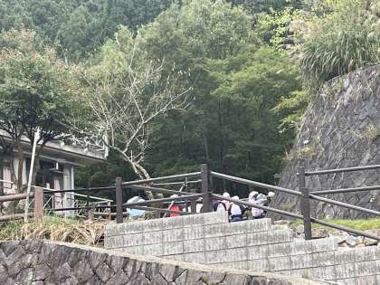 花背山の家に到着し、入所式と散策路の下見に行きました。花背山の家の天候は曇りです。市内より気温も低く、少し肌寒い天候です。