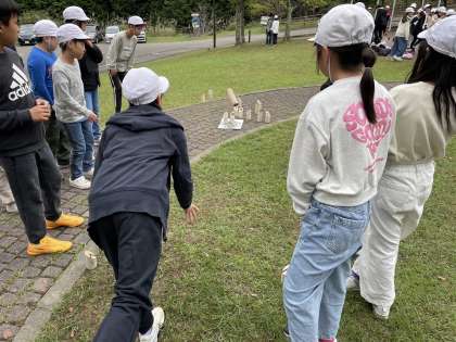 モルックの活動。50点ピッタリというのが難しく、なかなかクリアーできません。