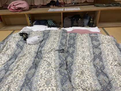 夜の時間は、お風呂に入ったり、お茶を入れたり、布団をきちんと敷いたり。そして、友だちとお話しして盛り上がったり。ゆったりと過ごしています。