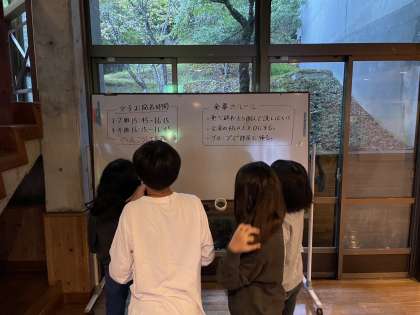 子どもたちは6時起床。朝からホワイトボードで予定の確認をしています。
