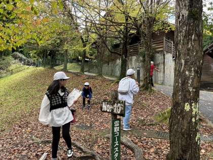 スコアオリエンテーリングが始まりました。花背山の家の施設内のポイントを周り、クイズを解いています。