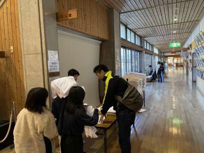 部屋の片付けが終わり、シーツを返却しています。