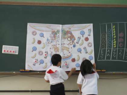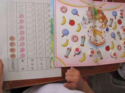 物の種類ごとに数を数え,絵グラフをかく学習をしました。絵グラフに表すことで,大小を比べやすくなることに気付きました。