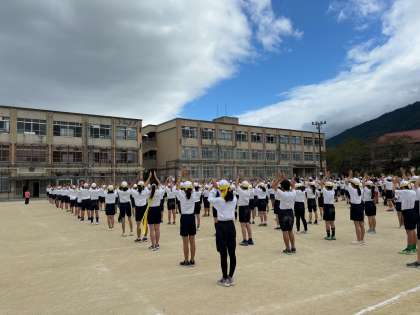 先週に引き続き、今日も全校練習を行いました。整列がスムーズになったり前回よりも大きな声を出せたりと、成長を感じました。