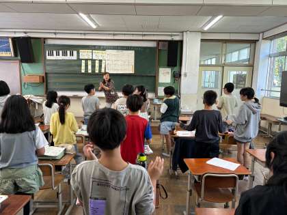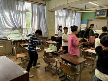 音楽科の学習で「こげよマイケル」を歌っている時の様子です。手拍子をすることで楽しさが倍増したような気がします!「ハレルヤ」の声の大きさに驚かされました!