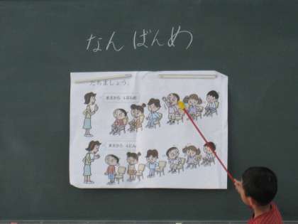 算数で「なんばんめ」の学習をしています。「まえから3ばんめ」「まえから3にん」の違いがなかなか子どもたちは分からないようで,絵を使って繰り返し説明したり、ブロックを動かしたりして考えさせています。