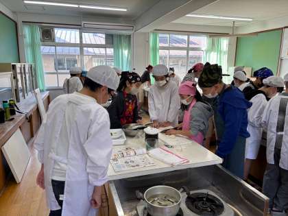 今日の調理実習では、みそ汁を作りました。前回の調理実習、山の家の経験もあってか、てきぱきと動く子が増えてきたように感じます。みそ汁は日本の伝統食。家で食べることも多いと思うので、今度は自分だけでも作ってみてほしいと思います。