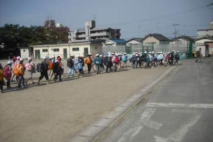 昨日の雨から一転。澄みきった青空のもと,4年生が初めての宿泊行事「みさきの家」に出発しました。楽しい思い出をいっぱい持ち帰ってくれることと思います。