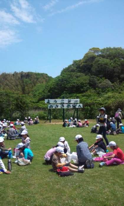さざなみの音をききながら,青葉いっぱいのみさきの家で食べるお弁当は格別のおいしさです。さわやかな風も吹いています。