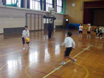 上に投げたり、ついたり、投げ合ったり、走りながら投げ合ったりしました。