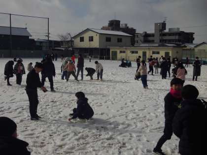 中間休みには雪の中元気に遊んでいる姿が見られました。
