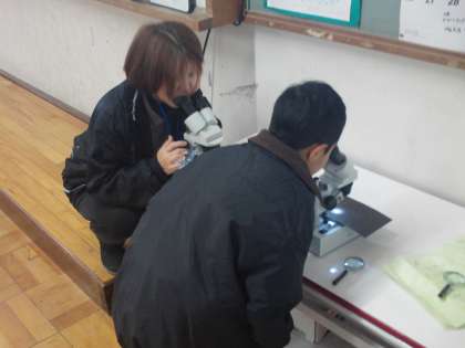 ルーペや顕微鏡を使って、結晶の観察をしました。