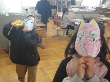 昨日は節分ということもあり、鬼のお面を作りました!