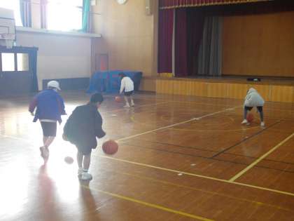 バスケットボールを両手でついたり片手でついたりしました。
