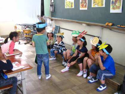 「はなのみち」の音読劇の様子です。登場人物の気持ちを考えて,せりふを考えて劇をしていく予定です。