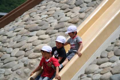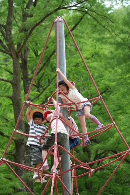 子どもの楽園の遊びの施設をいっぱい使ってたくさん遊びました。汗をいっぱいかき,のどがからからになりました。