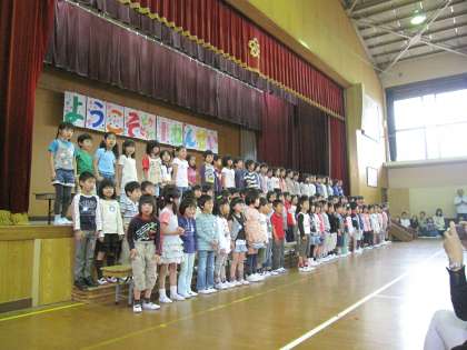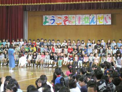 今日は待ちに待った1年生を迎える会がありました。上級生からの温かい言葉や劇・楽しい歌に目をきらきらとさせていました。練習してきた「さんぽ」や全校合唱の「ゆめをかなえてドラえもん」など一緒に歌う体験ができ,楽しい時間を過ごすことができました。