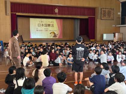 さて、今月は憲法月間ということもあり、憲法についてのお話を聞きました。社会で日本国憲法について学んでいたこともあり、お話の途中に「3つ原則があるんやけど…」というところでもしっかりと学んだことを発表できていて素晴らしかったです。