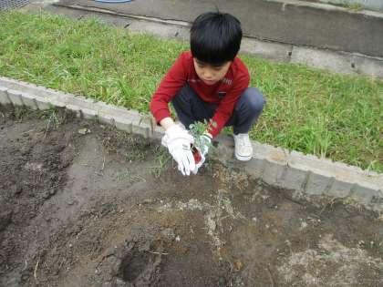 ひまわり学級では、夏野菜を育てていきます。4月に土づくりをし、今日は野菜の苗を植えました。これから毎日水やりをします。立派な野菜が育つといいですね。
