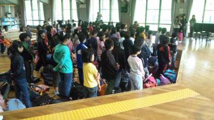 退所式の様子です。楽しみにしていた山の家の活動もあっという間に終わりました。思い出をたくさん作って,修学院に向かって帰ります。予定通り2時出発。3時前後には学校到着の予定です。