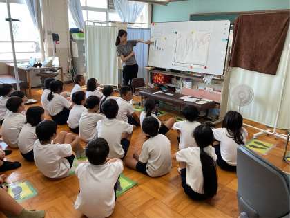 この夏休みで、ひとまわり大きくなった子ども達。体操服に着替えて身長と体重を測定しました。保健室の前に美しく並んだ上靴から、みんなの意識の高まりが感じられました。身体計測の前に、養護教諭より「睡眠」についてのお話を聞きました。大切なことは、「8〜9時間の睡眠をとること」「寝る前にスマホやゲームをしないこと」まだまだ暑い日が続いています。5年生のみなさん、寝る前のゲームやスマホに特に注意して、楽しく元気に学校生活を過ごしていきましょう!