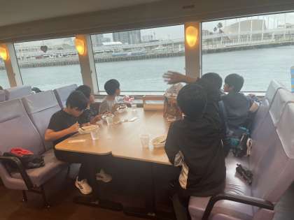 いよいよ出港し、港の人に手を振ってお別れ。カレーを食べて、クルーズを優雅に楽しんでます。