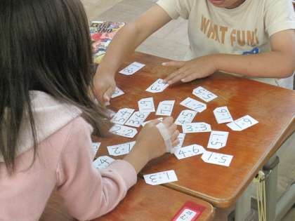 計算カードを使ってゲームをしている様子です。計算カードは,これから何度も使って練習していきます。