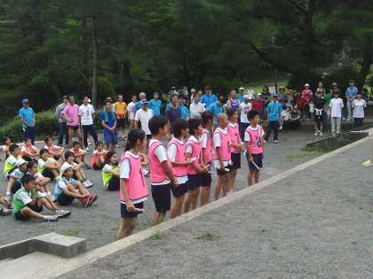写真は,表彰式の様子です。チーム優勝にトロフィーと副賞を,男子女子の1位に賞状とメダルをいただきました。