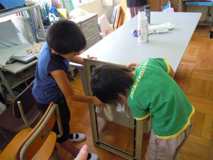 その後、お家の方と一緒に教室の掃除をしました。