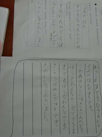 また,話すとき・聞くときに気をつけることも考えてお話会にむけて話す練習をしています。声の大きさに気をつけて発表できるようになってくれればと思います。