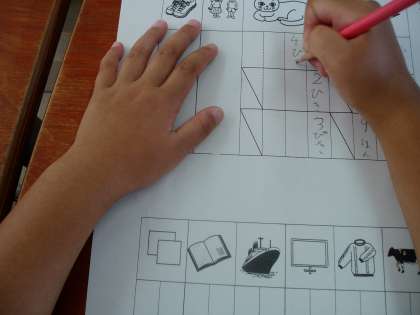 昨日は「何ひき」「何まい」というような助数詞を声に出して読みましたが,今日は書く学習をしました。「1ぽん」「2ほん」「3ぼん」のように読み方が変わるものを,声にだして考えながら子どもたちは書いていました。
