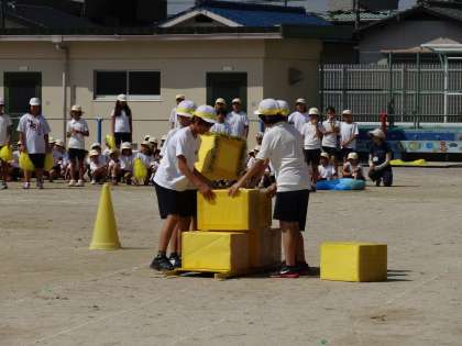 「おみこしリレー」は,箱を積んで運びますが,バランスを取ることが難しかったようです。
