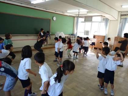 今日から,なかよし運動会に向けて「おいものたいそう」の練習が始まりました。ひまわり学級のみんなと一緒に楽しく体操できました。