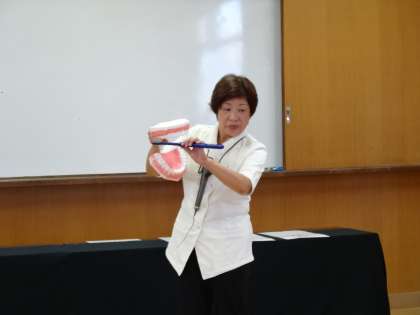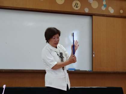 歯磨き巡回指導では,歯ブラシの持ち方・磨き方について勉強しました。奥歯や前歯,歯の裏側など,それぞれ違う磨き方を教えてもらい,子どもたちは実際に歯磨きをしました。「くるくると小さく回して」や「こしょこしょこしょ」など,具体的に磨き方を説明してもらったので,子どもたちは楽しく上手に歯磨きをすることができたようです。