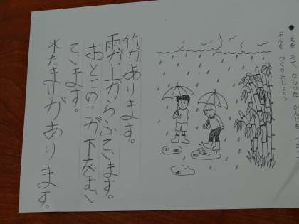 習った漢字を使った文作りを引き続きしています。習った漢字を使えることが嬉しいらしく,子どもたちは絵に合う文を次々と考えていました。