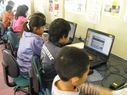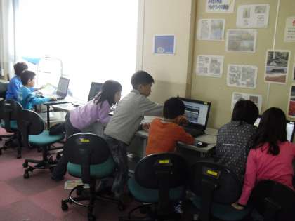11月8日(木)ローマ字学習も終わり,いよいよローマ字入力でパソコン学習を始めました。まずは,パソコンの基本でキーボード打ちの練習です。最初は一字ですが次は二字,三字とだんだんレベルがあがります。四苦八苦しながらも楽しんでいました。