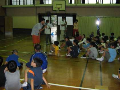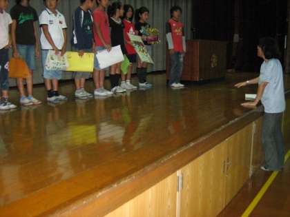 高学年の子どもたちが,体育館に集まって前日準備をしました。今のところ,運動会は実施の予定です。雨があがるのを祈っています。