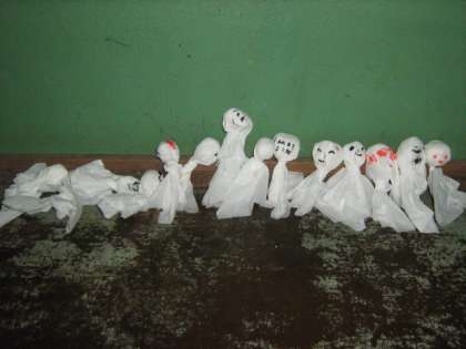 1年生の子どもたちが,願いを込めて「てるてる坊主」を作りました。これだけたくさんのてるてる坊主がいるのですから,きっと明日は晴れることでしょう。