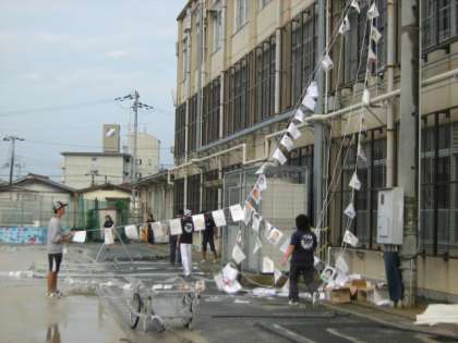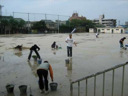 運動場の整地,準備をしています。天候が急変しない限り,本日の運動会,予定通り実施します。午前7時30分現在。